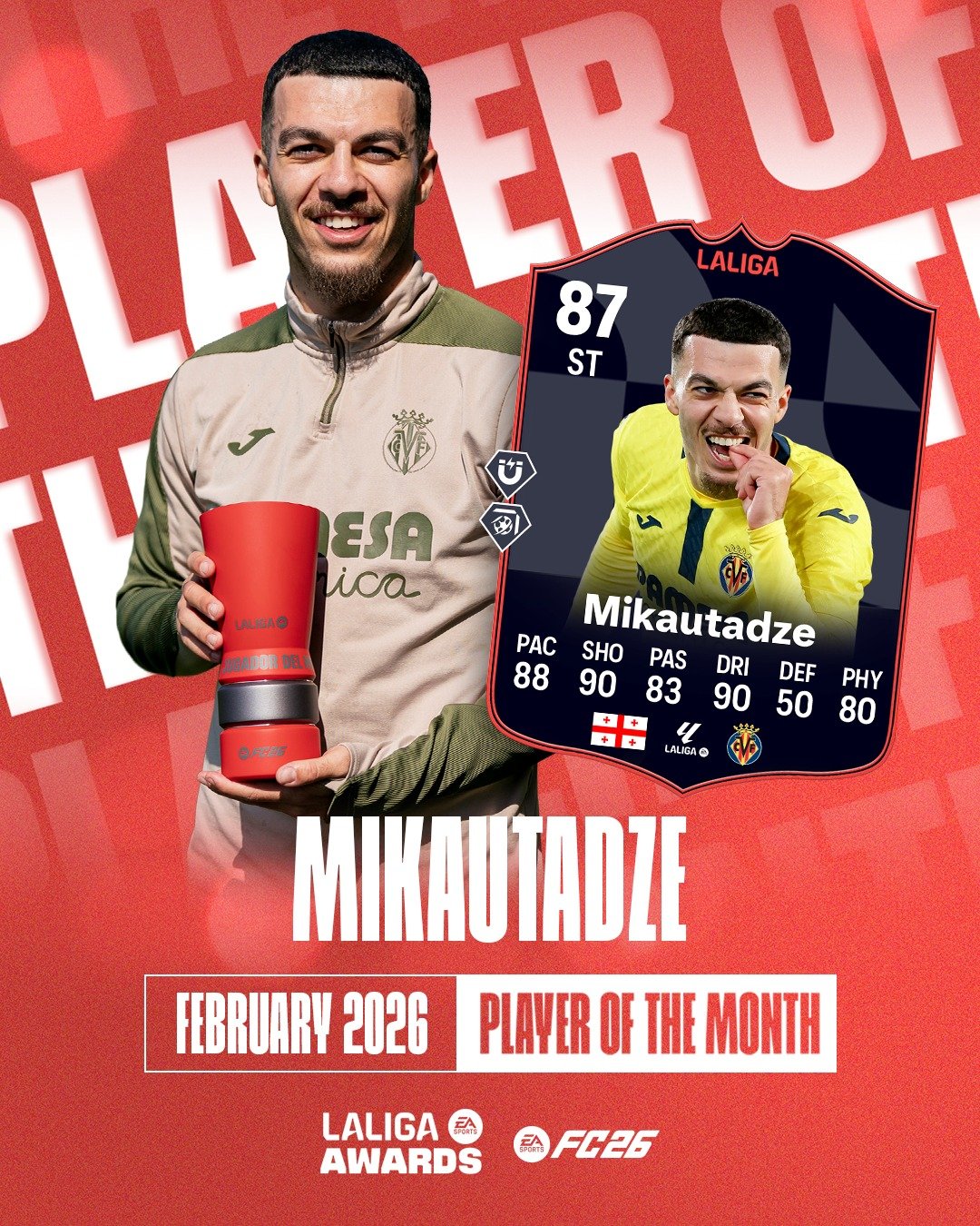 ๐ @georgesmkd, @villarrealcf’s forward, is the ๐๐๐๐๐๐ ๐๐ ๐๐๐ ๐๐๐๐๐ for February in