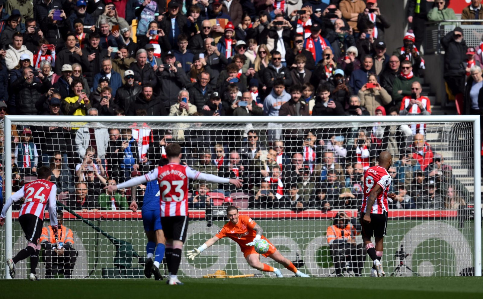 Now a full Brazilian international and on course to earn a place in Carlo Ancelotti's Seleção squad for the World Cup this summer, Thiago slammed home the opener from the spot in just the third minute after Dango Ouattara was brought down in the box by Jordan Pickford.