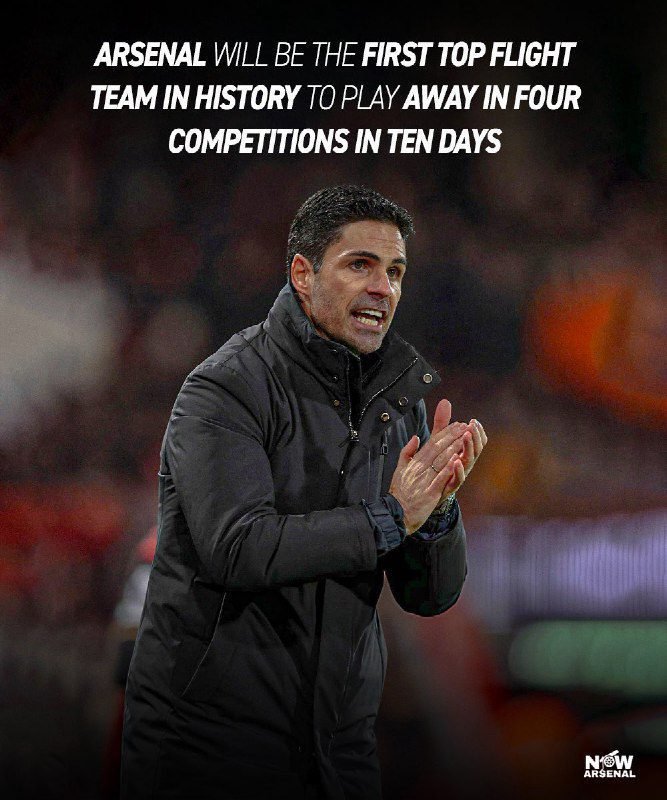 ๐จArsenal will be the first top flight team in history to play away in four competitions in ten days.