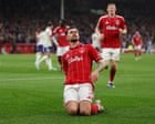 On a typically nervy afternoon on the Trent, one of the biggest cheers of the afternoon arrived in the seconds after the final whistle, news over the speakers that Tottenham were still trailing at Sunderland. For Nottingham Forest, a creditable draw against Aston Villa takes them another precious point towards Premier League safety, Neco Williams’s low strike cancelling out Murillo’s own goal; confirmation that Forest are now three clear of the relegation zone was greeted as warmly as one would expect.