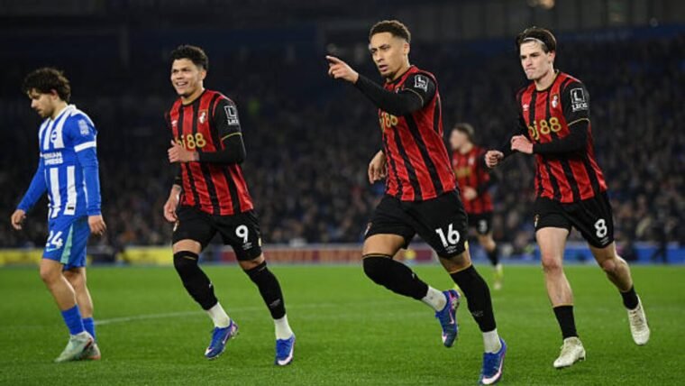 Bournemouth (4-2-3-1): Djordje Petrovic, Adrien Truffert, Marcos Senesi, James Hill, Alex Jimenez, Lewis Cook, Alex Scott, Amine Adli, Eli Kroupi, Adam Smith, Evanilson.