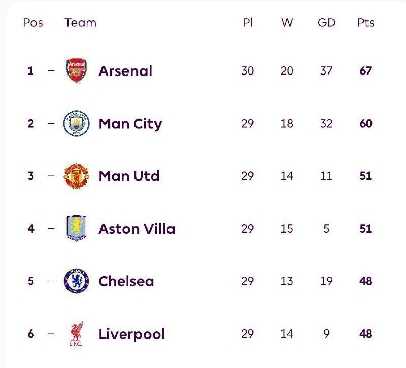 Current standings 📈
