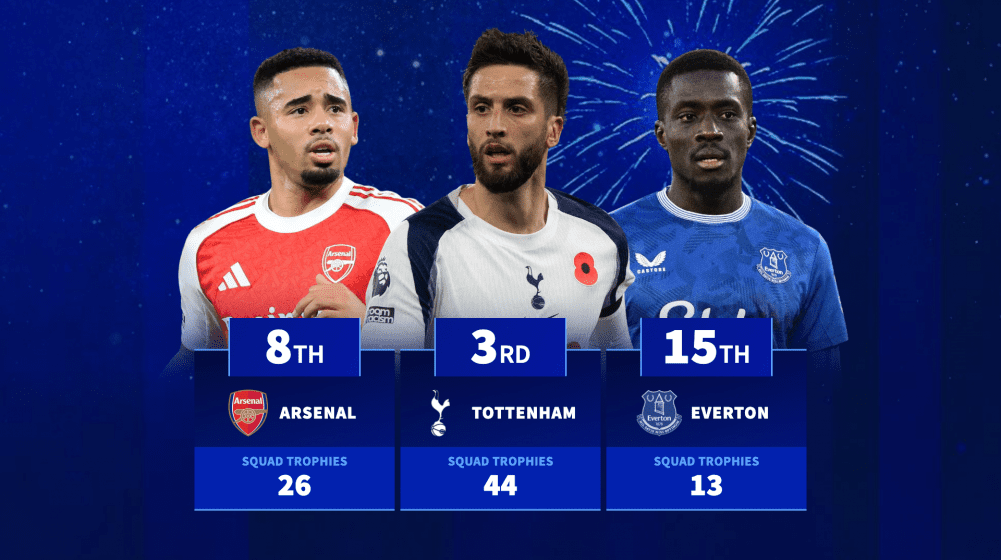 In fourth place are Manchester United with 43 trophies – Casemiro is the main contributor with 11. Chelsea take fifth with 30 trophies – mainly gathered by ‘bomb squad’ member Raheem Sterling, who has won 10 trophies. In sixth position is FA Cup champions Crystal Palace with a total of 28, mainly generated by the current squad because of last term’s triumph at Wembley. In seventh is last season’s EFL Cup champions Newcastle with 26 trophies.