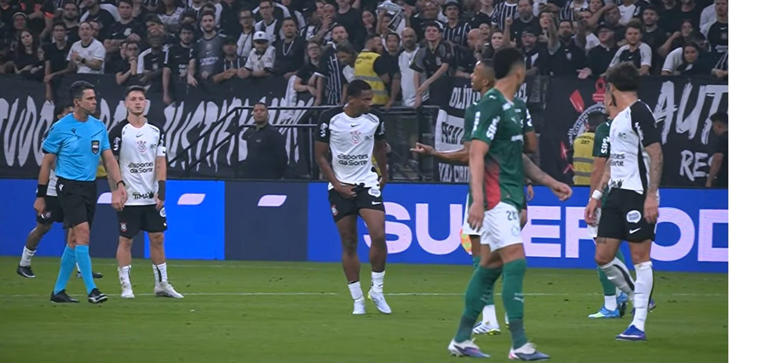 That happened because the referee, after checking VAR, saw that the Corinthians player grabbed an opponent from Verdão by the "private parts" during an argument.