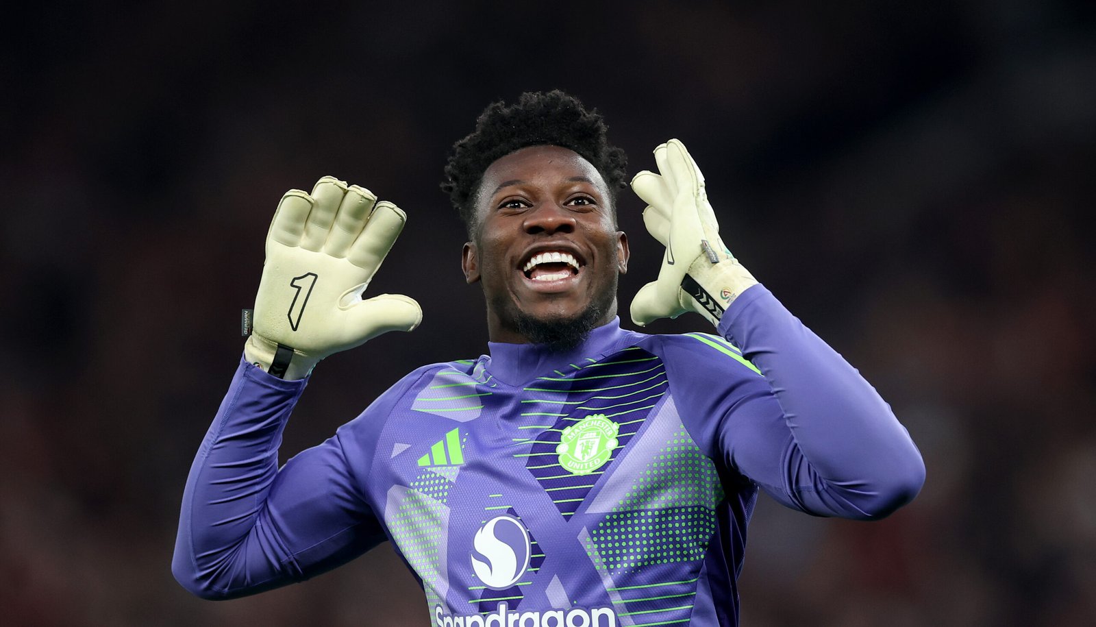 BILBAO, SPAIN – MAY 21: Andre Onana of Manchester United acknowledges the fans as he enters the pitch to warm up prior to the UEFA Europa League Final 2025 between Tottenham Hotspur and Manchester United at Estadio de San Mames on May 21, 2025 in Bilbao, Spain. (Photo by David Ramos/Getty Images)