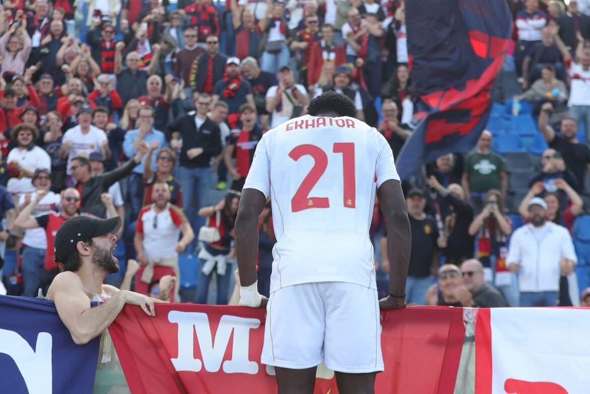 PISA, ITALY – APRIL 19: Jeff Ekhator of Genoa CFC celebrates after scoring a goal during the Serie A match between Pisa SC and Genoa CFC at Arena Garibaldi on April 19, 2026 in Pisa, Italy. (Photo by Gabriele Maltinti/Getty Images)