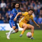Leicester player Jordan James is hunched down in disappointment after the Foxes are beaten at Portsmouth.